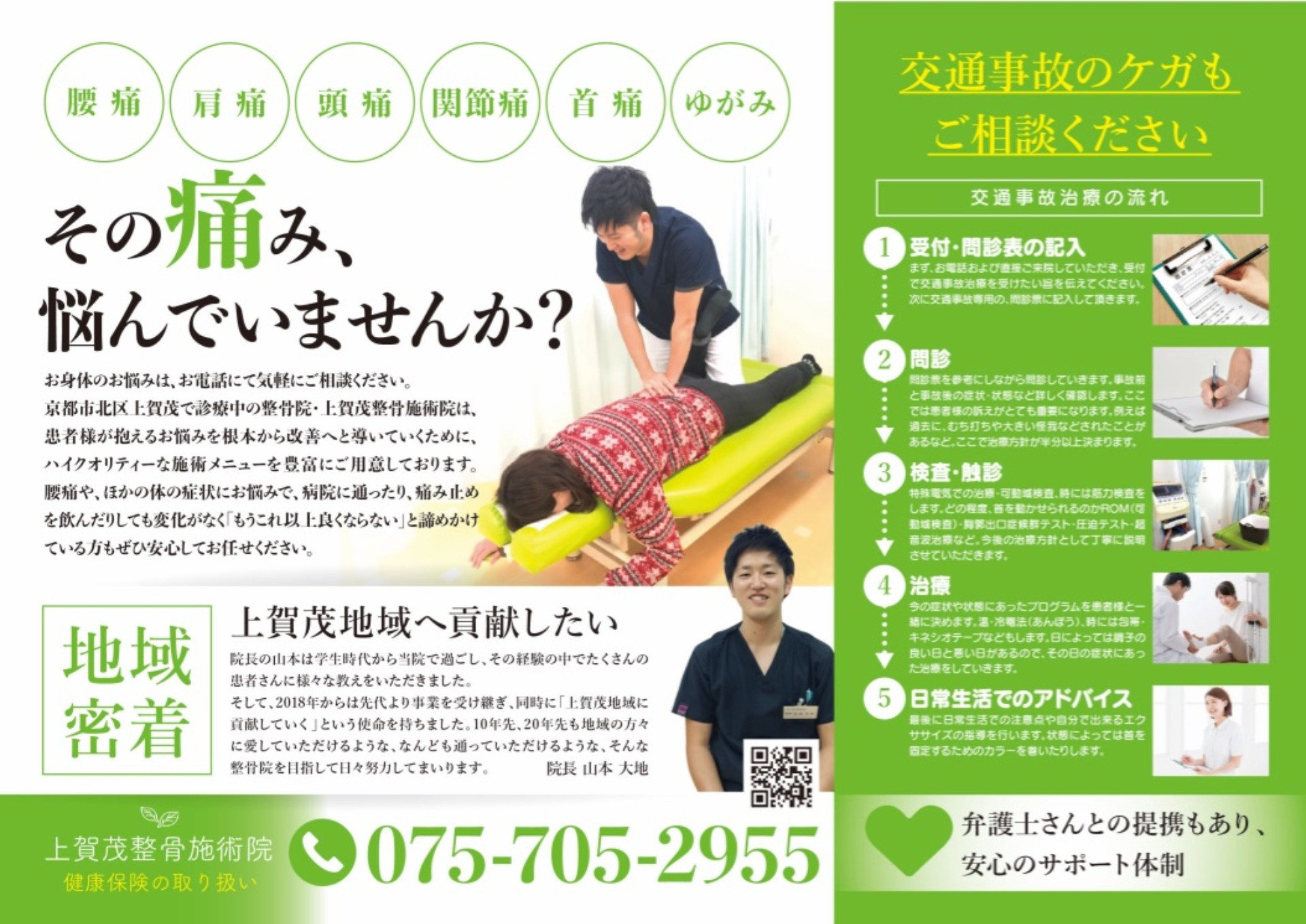 京都市北区での交通事故治療は『上賀茂整骨施術院』にお任せ下さい。 2019/11/02 新しいチラシできました!! 診療時間に伴いチラシを作成しました!! また、皆様のご自宅に配らせていただこうと思いますのでよろしくお願いします(^^) 日曜診療 明日は、本来お休みなんですが、私山本、出勤しております(笑) おそらく午前中のみだと思いますが、どうぞ、お立ち寄りください(^^)